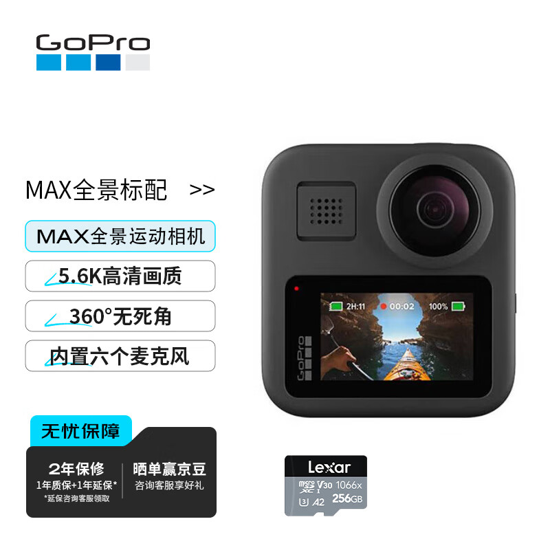 GoProMax全景标配 运动相机 户外摩托骑行防抖 水下潜水防水 滑雪照相机 加256G存储卡套组价格:3207.00元!