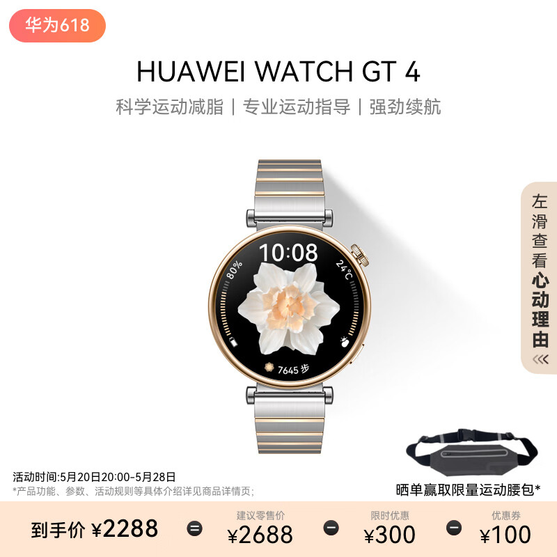 华为【520送女神】WATCH GT4华为手表智能手表呼吸健康研究心律失常提示华为手表皓月银价格:2388.00元!