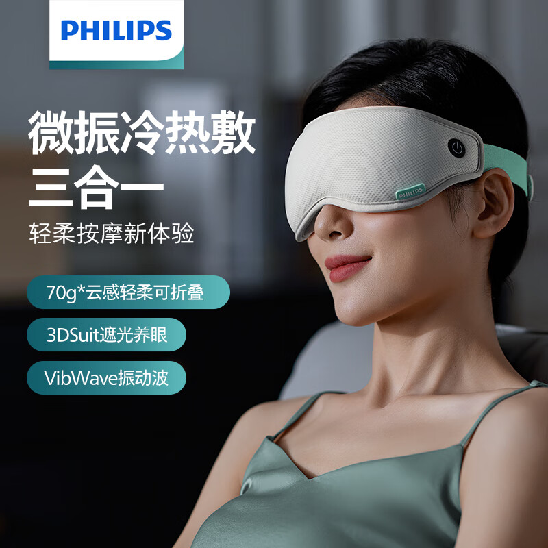 飞利浦(PHILIPS)眼部按摩仪护眼仪 可折叠冷热敷穴位按摩器 遮光眼罩睡眠 实用生日礼物节日送礼品3101E价格:599.00元!