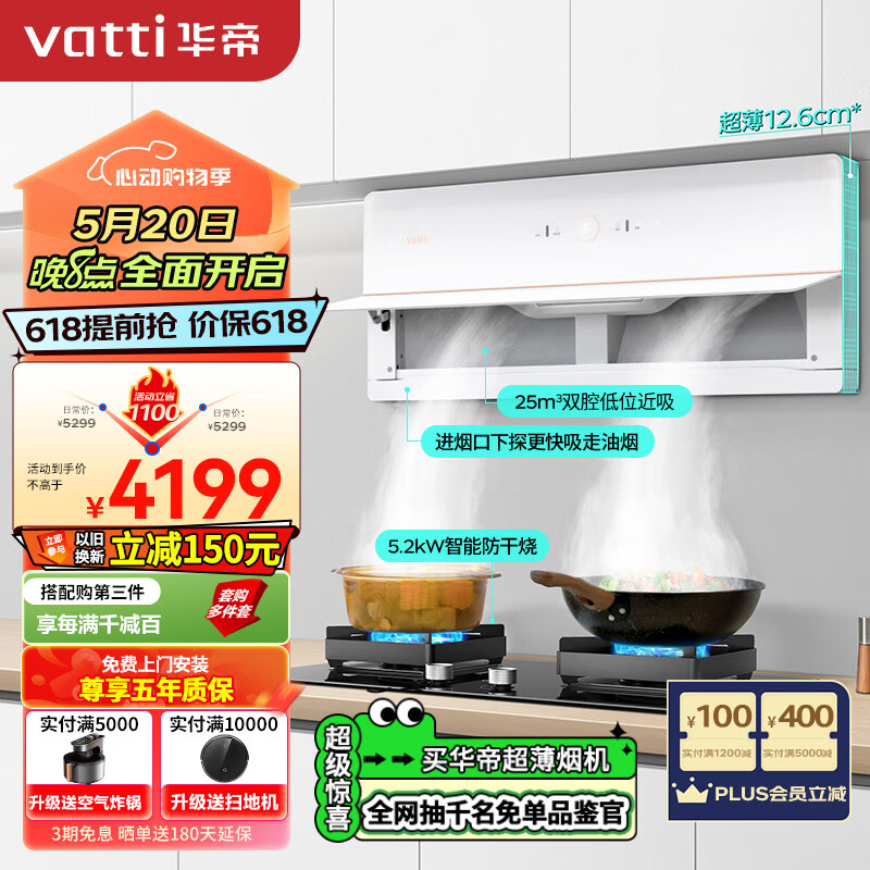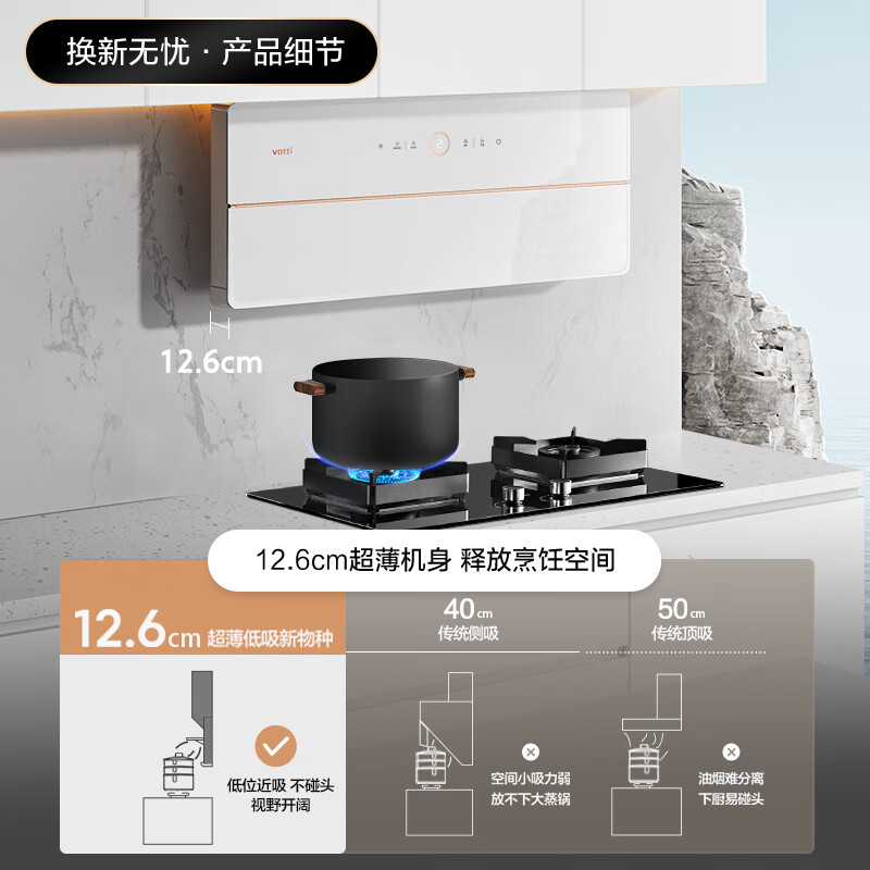 华帝(VATTI)抽油烟机超薄近吸艺术家X10家用大吸力侧吸小尺寸白色油烟机防干烧燃气灶具烟灶套装i11226天然气价格:4799.00元!