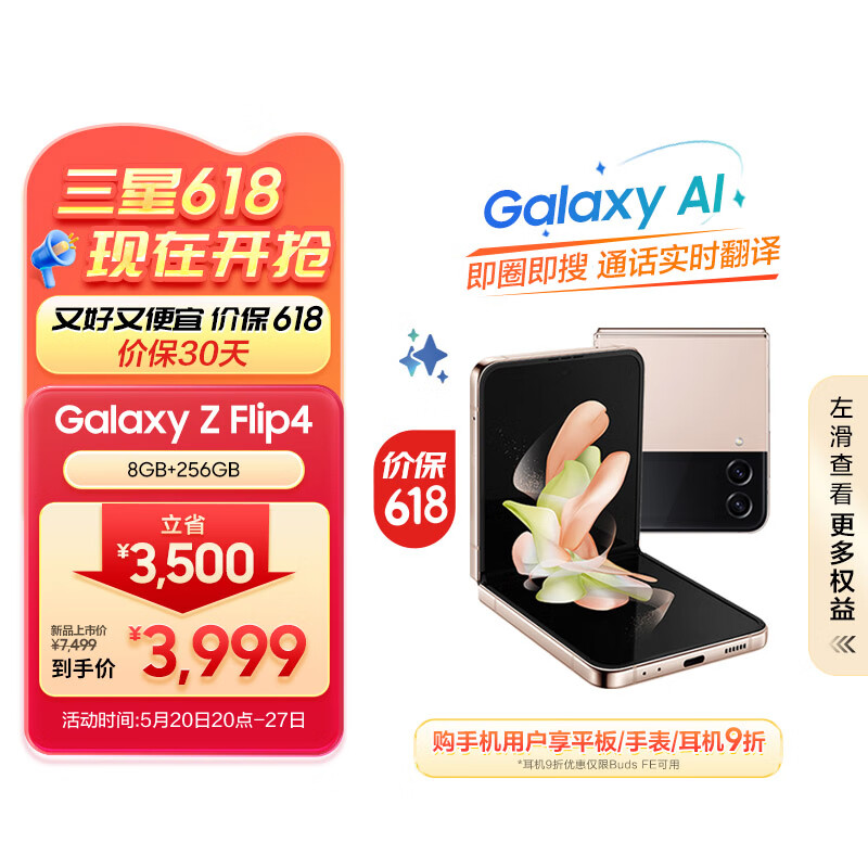 三星 SAMSUNG Galaxy Z Flip4 掌心折叠设计 立式自由拍摄系统 8GB+256GB 5G折叠屏手机 繁樱花园价格:3848.00元!