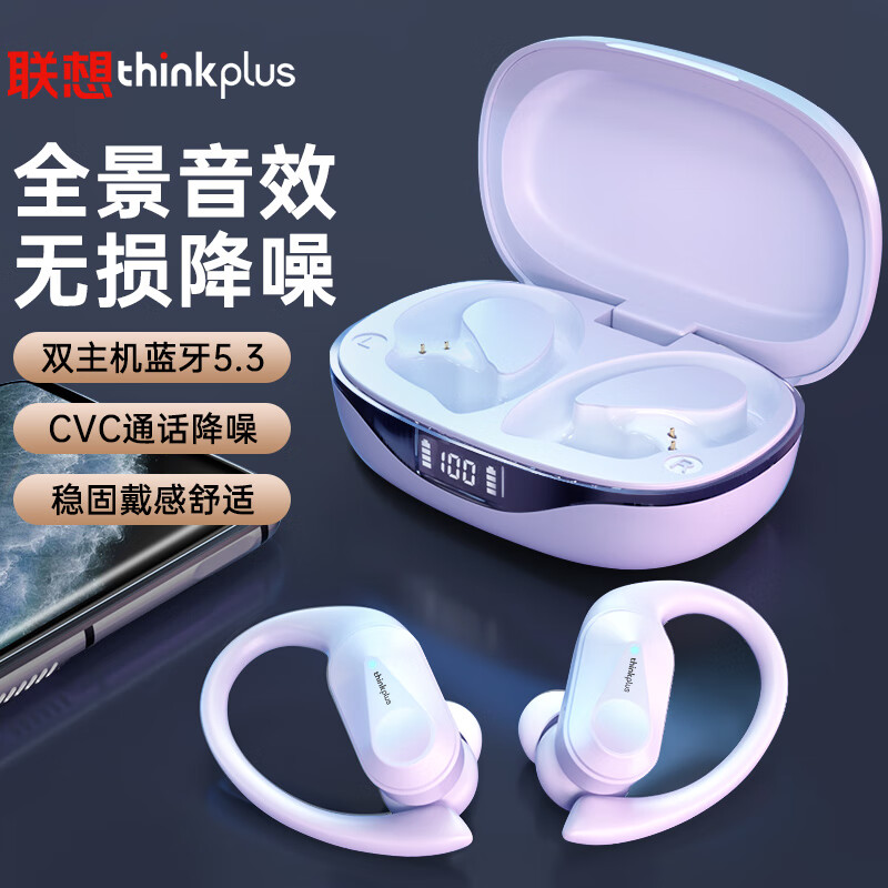 联想(Lenovo)【2024专业运动款】真无线蓝牙运动挂耳式 降噪音乐跑步骑行入耳式防水 适用苹果安卓 LP75白价格:139.00元!