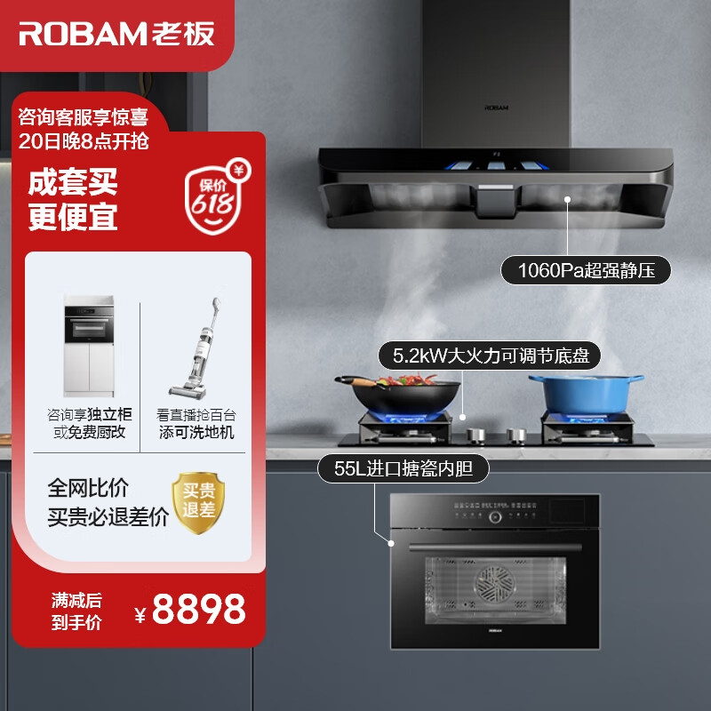 老板(Robam)62D3S+57B2D+CQ9062D钢琴家抽油烟机灶具蒸烤套装厨房多件蒸箱烤箱套嵌入式蒸烤炖炸(天然气)价格:9598.00元!