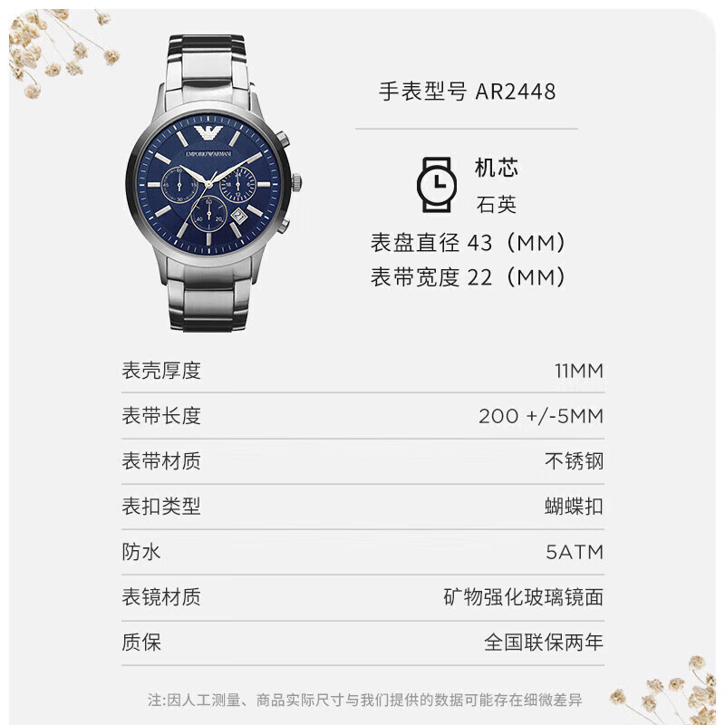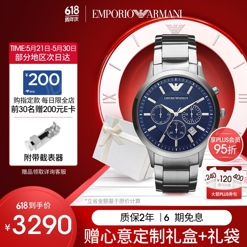 安普里奥·阿玛尼(Emporio Armani)手表男士多功能三眼钢带石英商务表520情人节礼物送男友 AR2448价格:3290.00元!