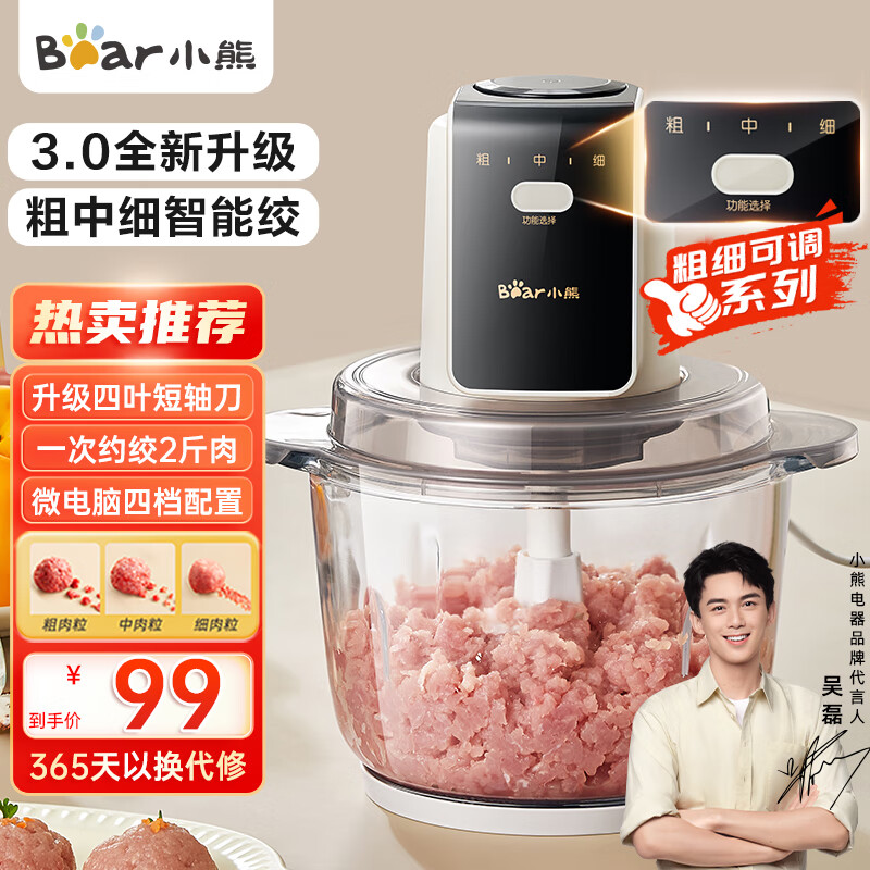小熊(Bear) 可调粗细绞肉机 家用绞馅机 碎肉机 多功能料理搅拌打肉机饺子肉馅蒜蓉机 搅肉机QSJ-E03G1单刀2L价格:99.00元!