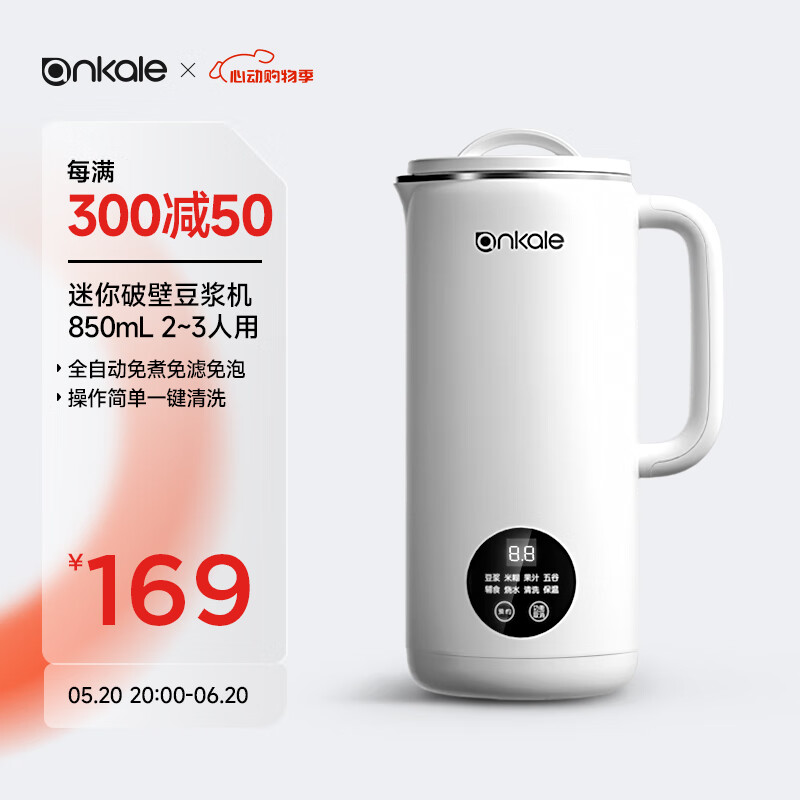 ankale破壁机 豆浆机 全自动免煮五谷杂粮 家用免洗小型1-2人破壁豆浆机 「优雅白」850mL价格:169.00元!