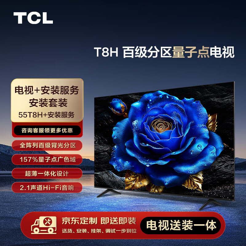 TCL安装套装-55英寸 百级分区量子点电视 T8H+安装服务【送装一体】价格:3098.00元!