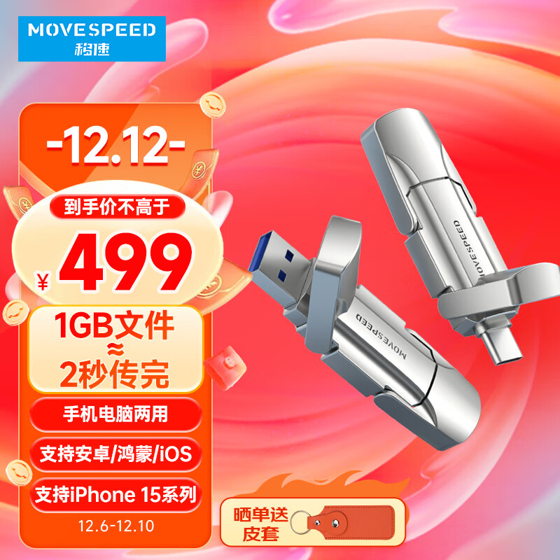移速(MOVE SPEED)1TB USB3.2/Type-c双接口 固态U盘 逸V系列 读速550M/s 苹果15系列 安卓&鸿蒙 车载优盘价格:539.00元!