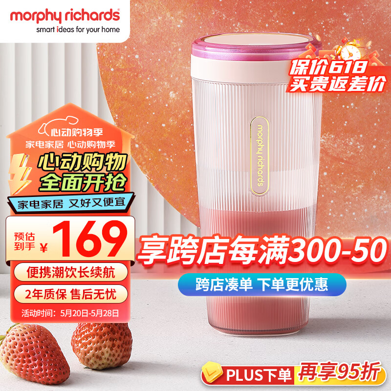 摩飞电器(Morphyrichards)榨汁机 便携式榨汁杯 网红无线充电果汁机 料理机迷你随行杯 MR9800 落樱粉价格:169.00元!