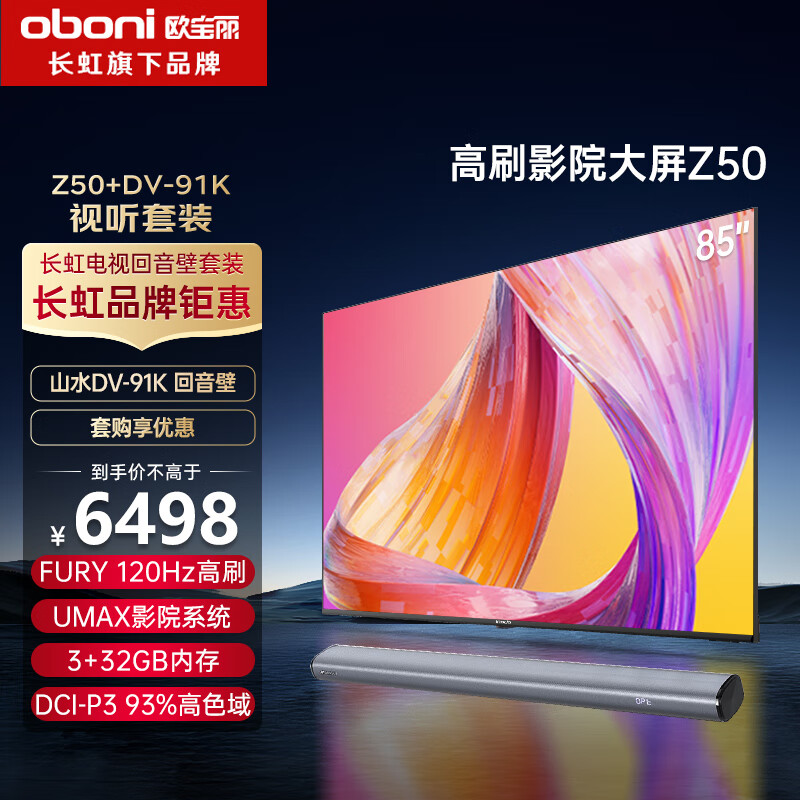 长虹欧宝丽85Z50 85英寸4K超清120Hz高刷影音大屏电视+山水DV-91K3D环绕低音炮价格:6649.00元!