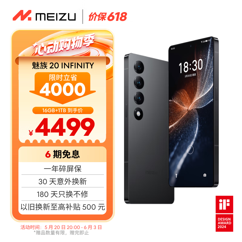 魅族(MEIZU)20 INFINITY无界版 骁龙8Gen2 Flyme系统 2K+臻彩屏 5G游戏学生拍照 领克手机域 星辰黑 16GB+1TB价格:4499.00元!