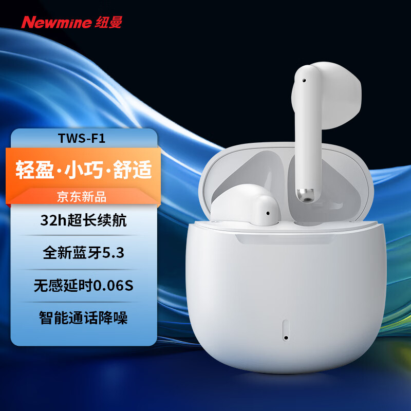 纽曼F1真无线蓝牙耳机 半入耳式音乐耳机 运动防水通话降噪长续航适用苹果小米华为三八妇女节礼物价格:138.00元!