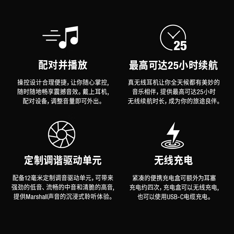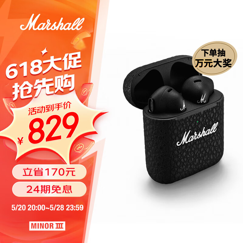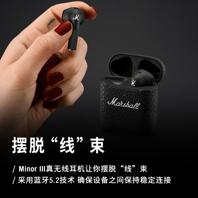 MARSHALL(马歇尔)MINOR III耳机真无线重低音防水3代无线蓝牙TWS耳麦 黑色价格:829.00元!