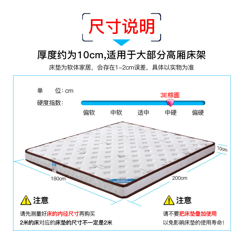 宜眠坊床垫 3E椰棕床垫 老人青少年偏硬棕垫A302-10 1.35*2米价格:599.00元!