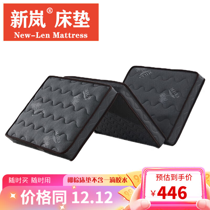 新岚椰棕床垫竹炭灰三折款 榻榻米垫单双人床垫硬床垫 150*190*6cm价格:446.00元!