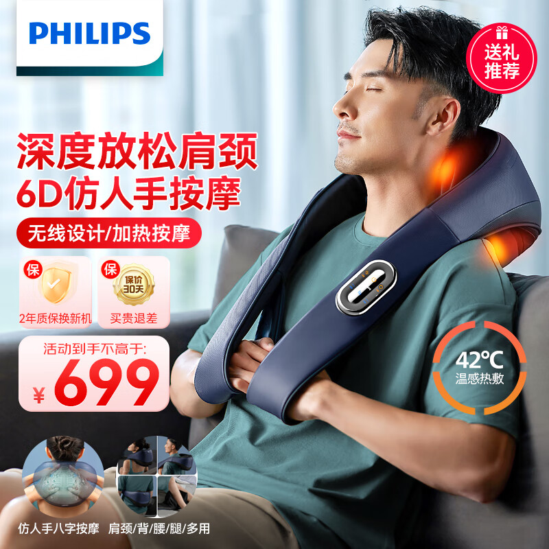 飞利浦(PHILIPS)5201N 颈椎按摩器 斜方肌按摩披肩颈按摩器颈部按摩仪 腰部揉捏热敷 520情人节礼物送男友女友价格:779.00元!