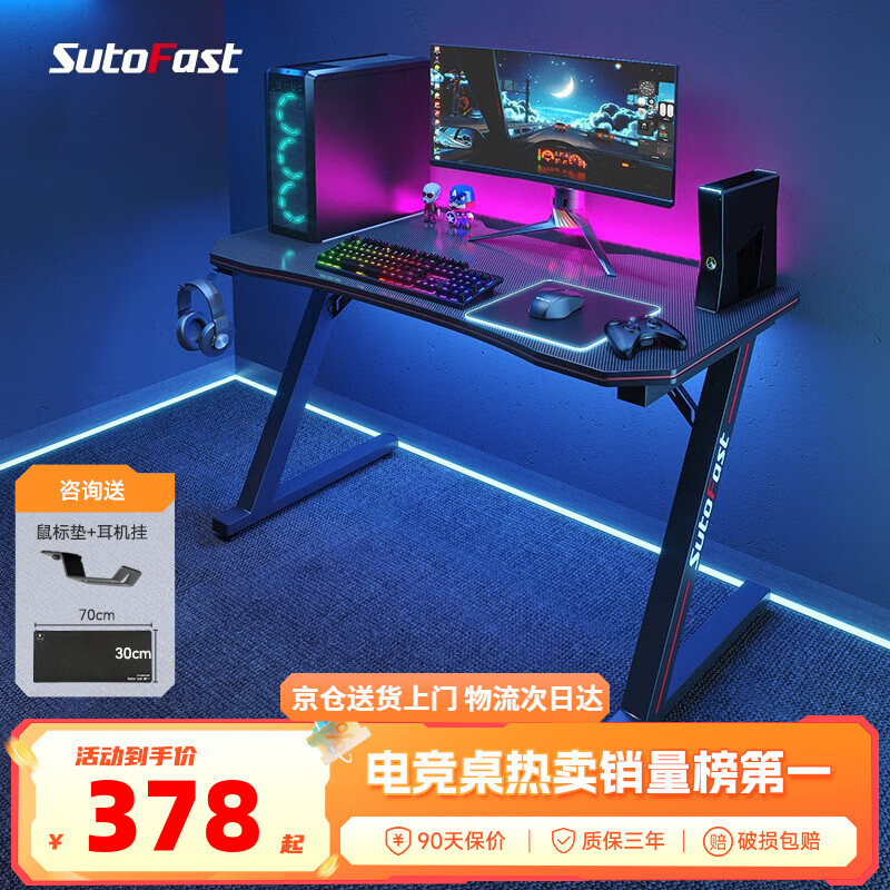 速一电脑桌电竞桌电脑桌台式电竞游戏桌家用办公家用书桌家用简易书桌 暗夜游侠【120*60*75】价格:378.00元!