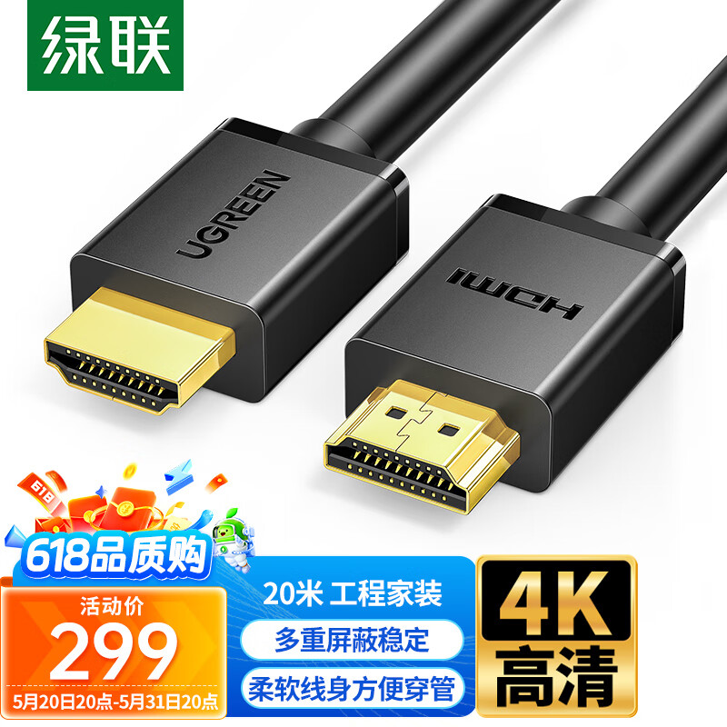 绿联HDMI线数字高清线 HDMI工程线 3D视频线 笔记本电脑机顶盒接电视投影仪显示器数据连接线 20米价格:328.00元!