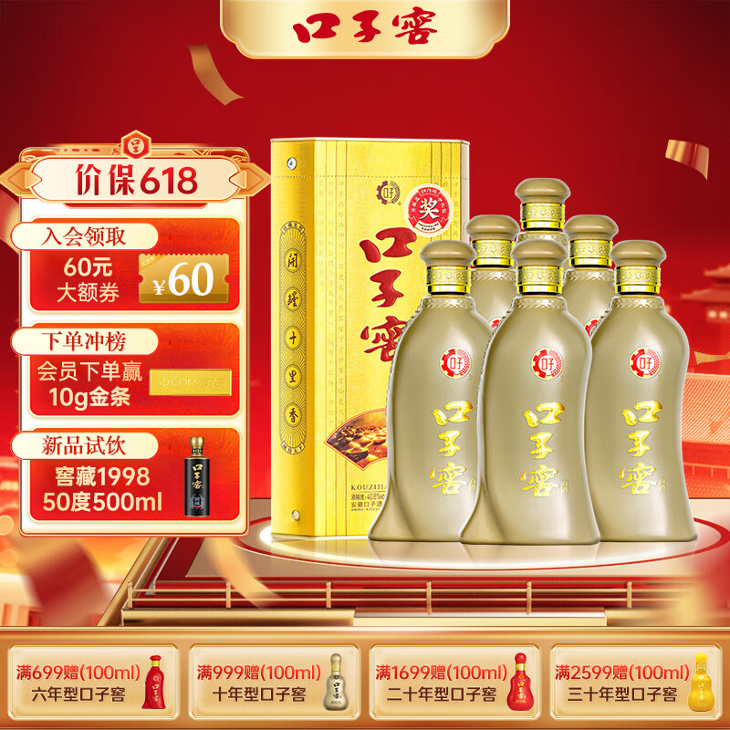 口子窖 五年型 兼香型白酒 40.8度 400ml*6瓶整箱装 送礼宴请价格:670.00元!