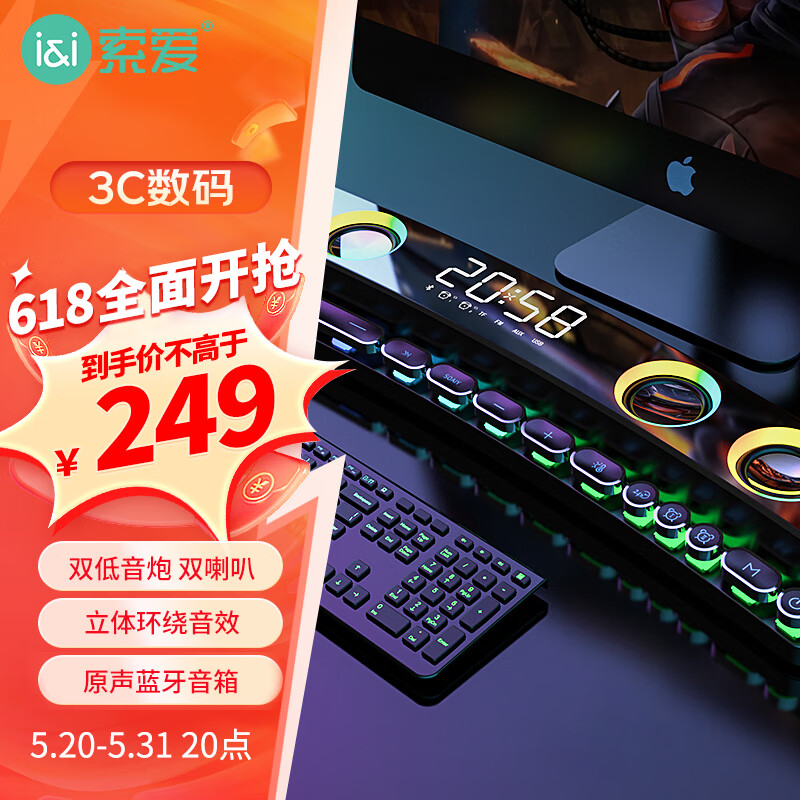 索爱(soaiy)音响电脑蓝牙音箱台式桌面电竞带麦克风氛围低音炮外置摆件科技感高音质男生生日礼物 SH39电竞黑价格:249.00元!