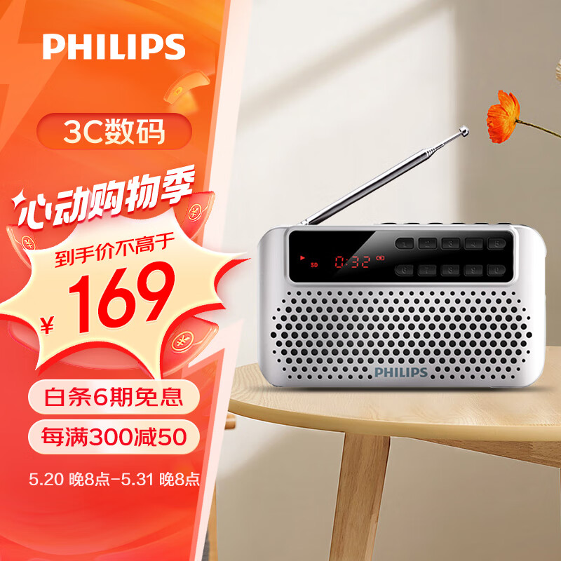 飞利浦(PHILIPS)SBM120 收音机老人充电插卡播放机一体机听歌戏曲评书老年人FM半导体便携式迷你小音响 银色价格:169.00元!