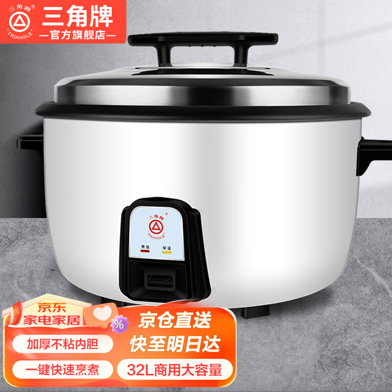 三角牌(Triangle) 商用大电饭煲食堂用大容量电饭锅酒店饭店适用8-30人以上带蒸笼8-36升 32L型加厚内胆【40-55人】价格:679.00元!