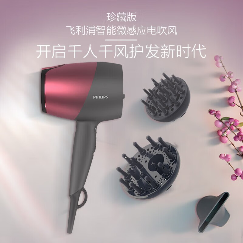 飞利浦(PHILIPS)吹风机 家用负离子护发电吹风大功率恒温速干沙龙级吹风筒智能微感应配头皮按摩器BHD287/05旗舰款价格:999.00元!