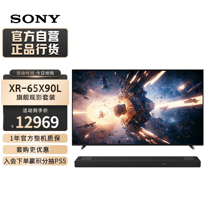 索尼(SONY)XR-65X90L+HT-A5000 旗舰游戏套装 回音壁 360智能穹顶 无线家庭影院 4K/120 VRR ALLM价格:12969.00元!
