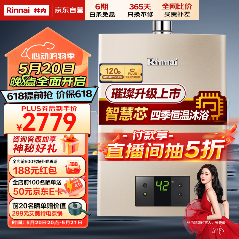 林内(Rinnai)璀璨系列16升燃气热水器 升级智慧芯 水气双调 天然气12T RUS-16QC05(JSQ31-C05)价格:2898.99元!