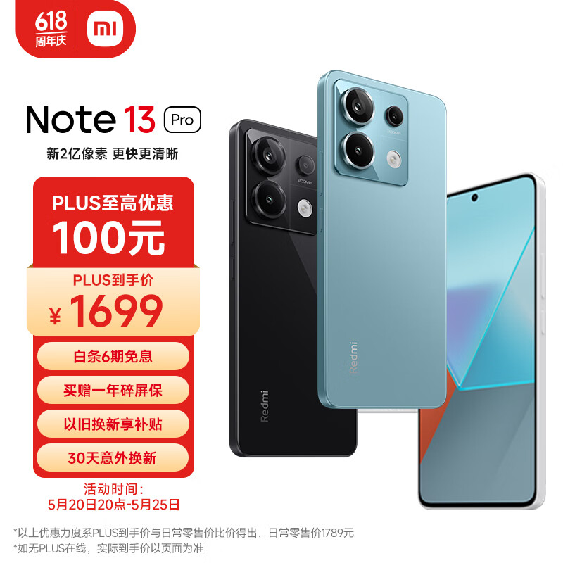小米Redmi Note13Pro 新2亿像素 第二代1.5K高光屏 12GB+512GB 时光蓝 SU7 5G手机价格:1799.00元!