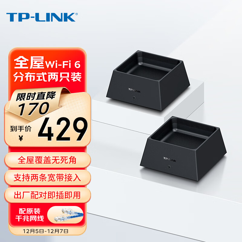 TP-link 全屋WiFi6 子母路由器 AX3000分布式两只装K20 千兆无线双频 别墅大户型易展Mesh 无缝漫游 即插即用价格:599.00元!