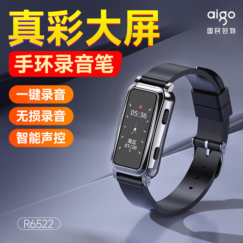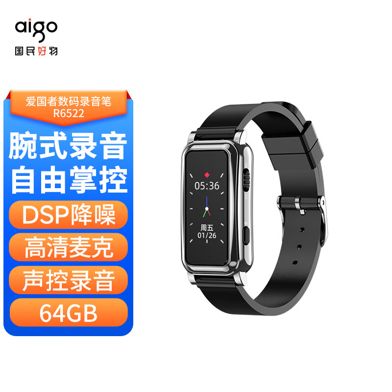 爱国者aigo手表手环式录音笔R6522 64G专业录音器一键录音高清降噪录音 MP3播放器 学习采访会议黑色价格:359.00元!