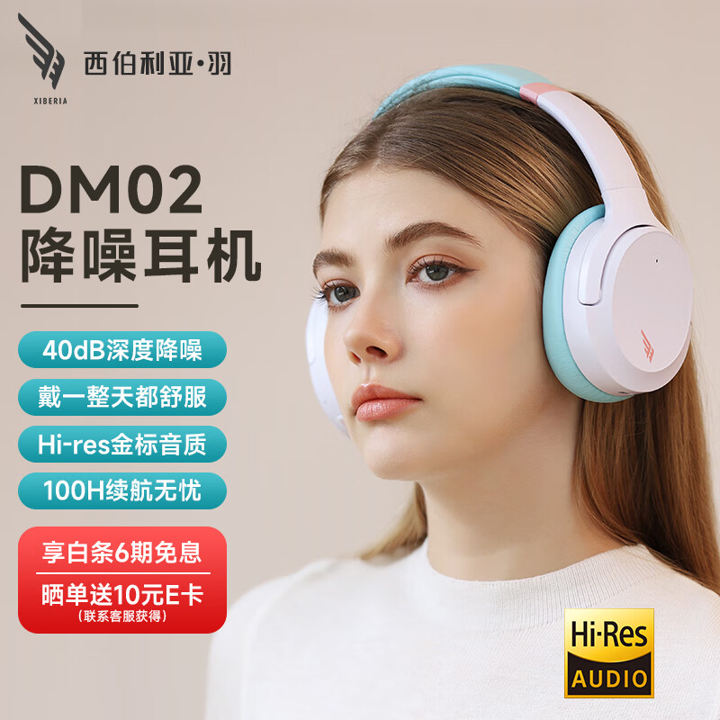西伯利亚(XIBERIA)羽DM02无线头戴式蓝牙耳机ANC主动降噪音乐游戏运动耳机天青白价格:179.00元!