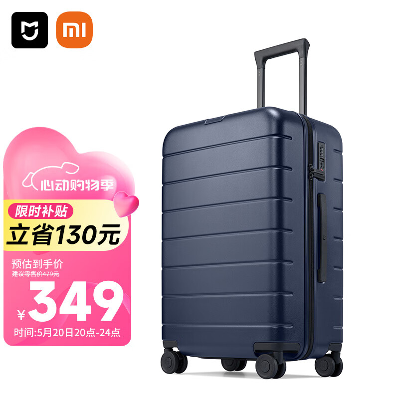 米家小米行李箱24英寸拉杆箱大容量旅行箱万向轮密码箱男女皮箱子蓝色价格:349.00元!