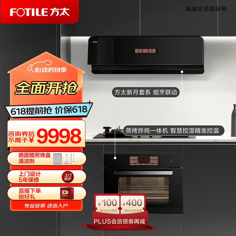 方太烟灶蒸烤三件套 24巡航风量挥手变频烟机 5kW燃气灶 蒸烤一体机 F1A+THF1A+EF1.I天然气价格:11098.00元!