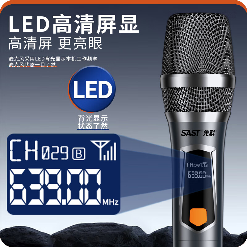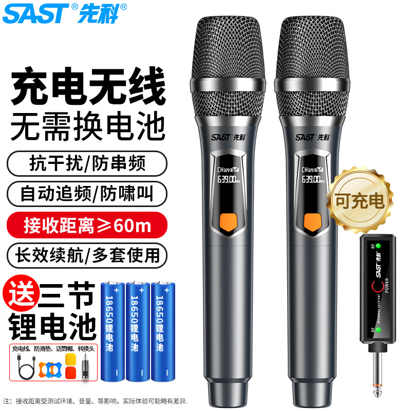 先科(SAST)ok-184 手持充电无线麦克风U段家庭KTV唱歌舞台主持演讲K歌会议音箱功放调频一拖二金属话筒价格:309.00元!