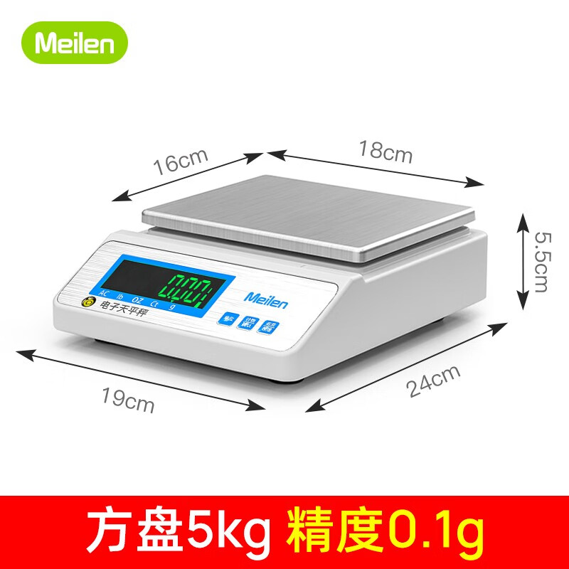 Meilen 电子天平0.01g0.001g高精度电子秤克称天平秤中药黄金珠宝秤实验室分析 方盘S-量程5000g-精度0.1g价格:168.00元!