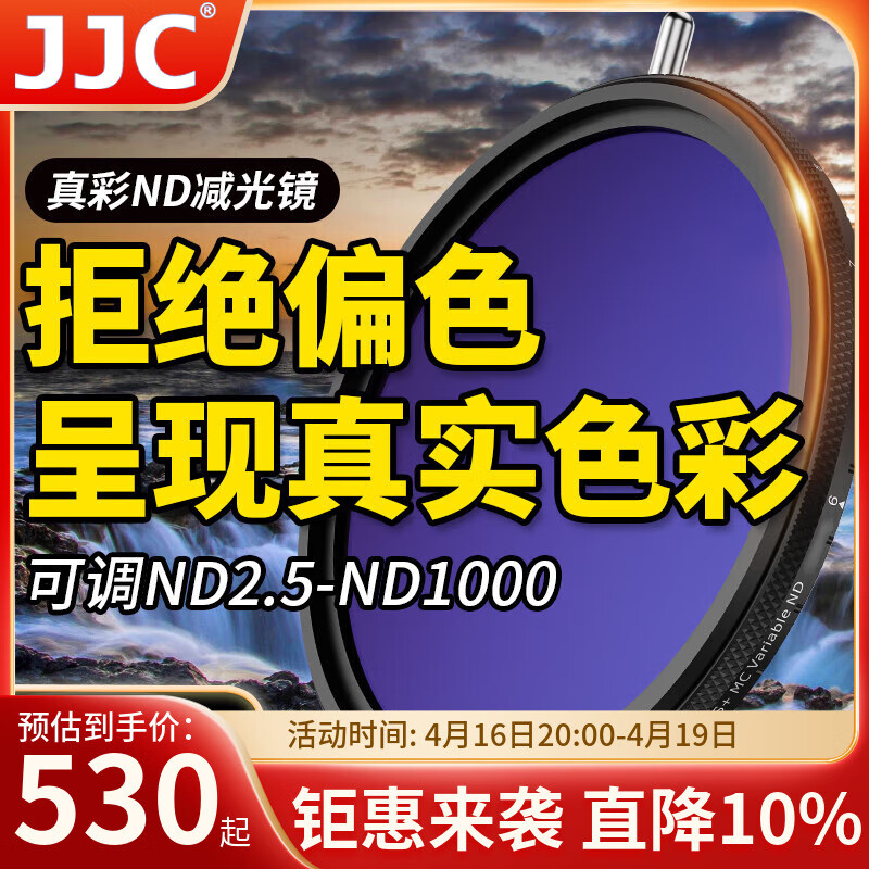 JJC nd滤镜 减光镜nd2.5-32 真彩可调节ND2.5-1000单反微单相机滤镜 无暗角无X阴影 不偏色62mm价格:530.00元!