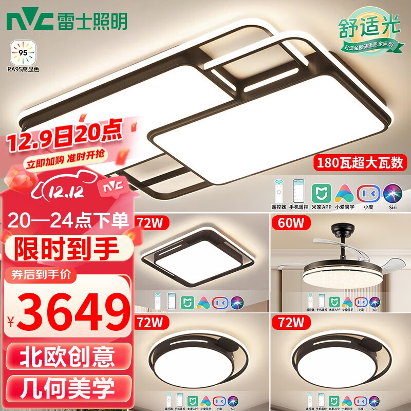 雷士(NVC)LED后现代LED吸顶灯大气北欧创意 房间灯智能Ra95-拾艺智控大尺寸价格:4799.00元!