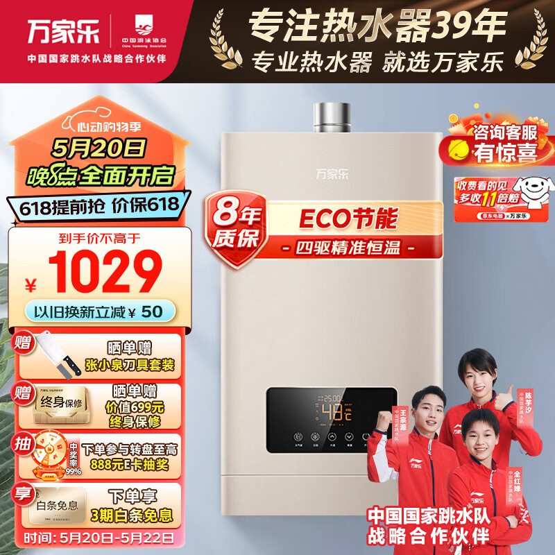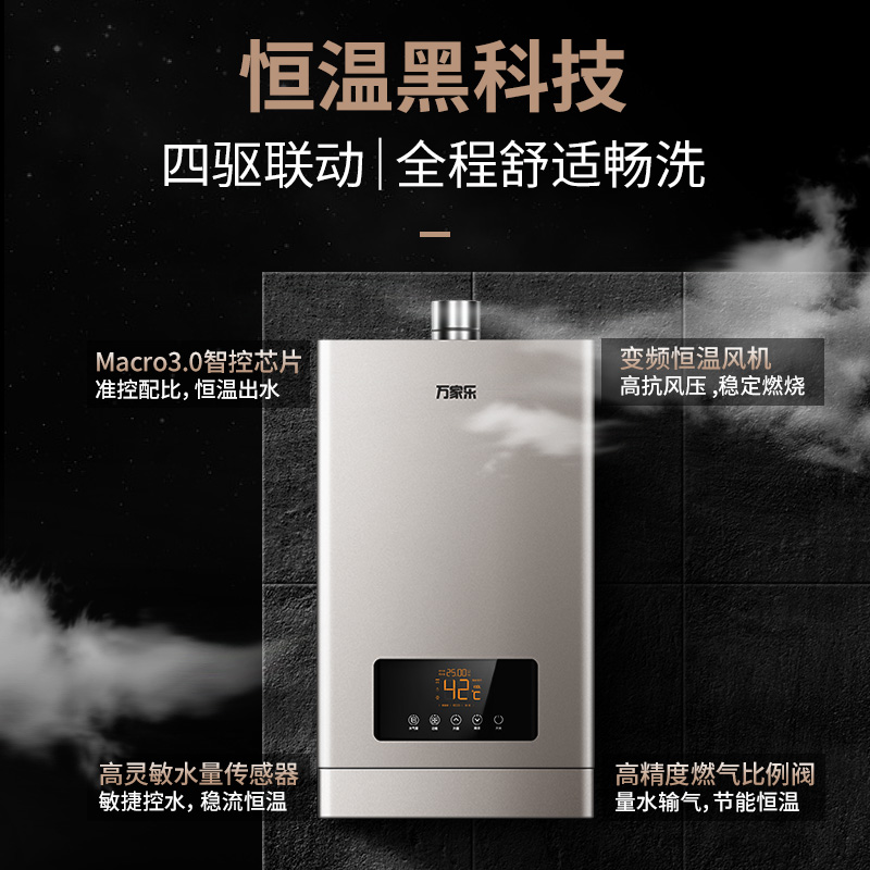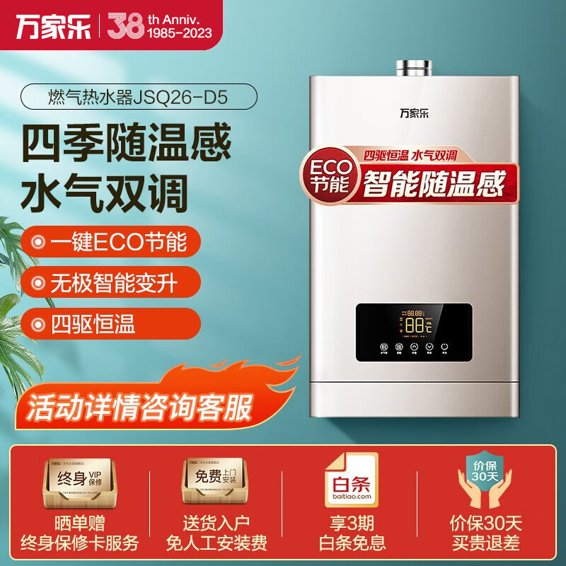 万家乐 13升燃气热水器(天然气) 四驱恒温水气双调智能变升ECO节能 四季随温感 浴缸水满智提醒JSQ26-D5价格:1299.00元!
