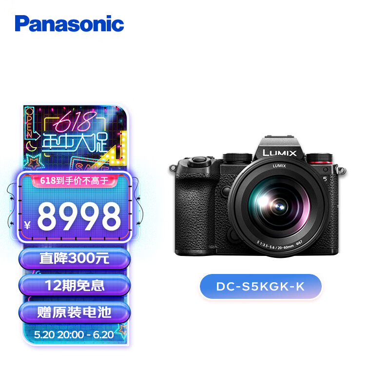 松下S5K 全画幅微单相机Panasonic数码相机 微单套机(20-60mm)约2420万有效像素 5轴防抖 双原生ISO价格:8998.00元!