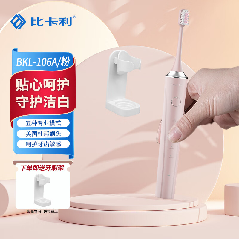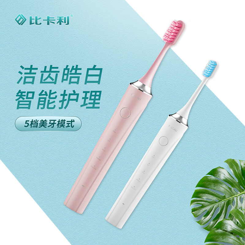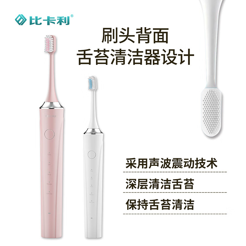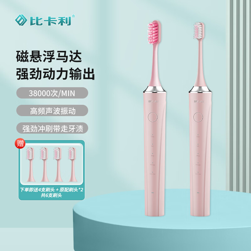 比卡利电动牙刷成人声波电动牙刷情侣款圣诞新年送女友/男友礼物 106B樱花粉 6支进口杜邦刷头价格:119.00元!