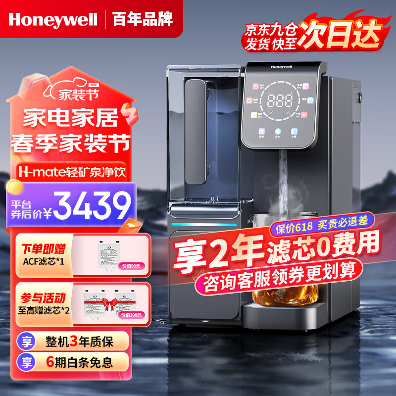 霍尼韦尔(Honeywell)H-mate轻矿泉台式净水器加热直饮一体机 即热式饮水机家用 免安装RO反渗透直饮机WSRO-A02价格:3599.00元!