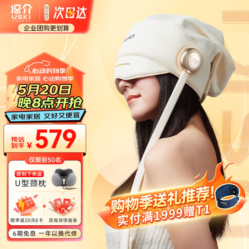 凉介USKI头部按摩仪 R1S头眼颈一体式睡眠仪2.0 眼部按摩仪热敷 头部按摩 生日 520情人节礼物 杏色价格:679.00元!