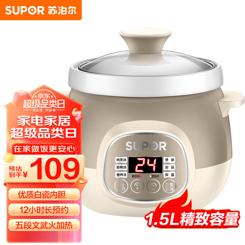 苏泊尔(SUPOR)电炖锅 电炖盅 煲汤锅炖汤锅 燕窝炖盅 煮粥神器 电汤锅 电煮锅 婴儿辅食锅DG15YC818 1.5L价格:98.00元!