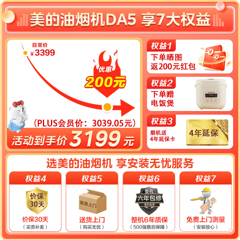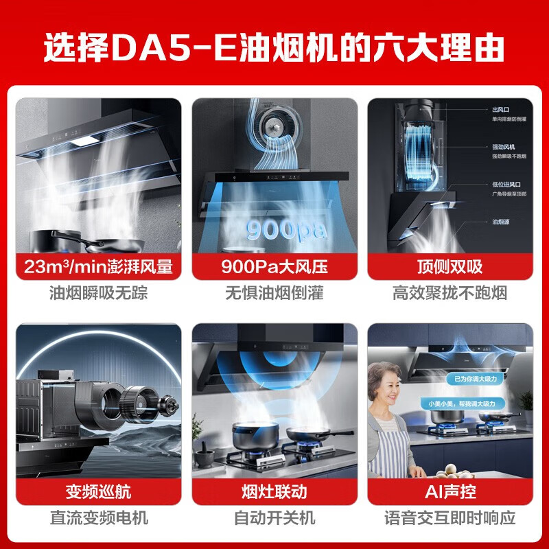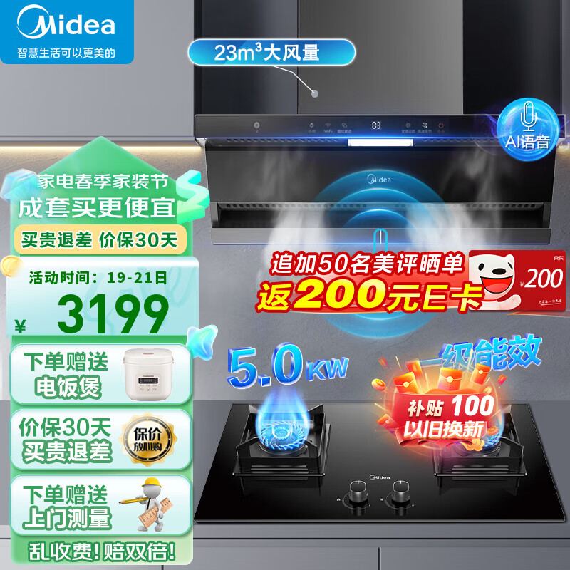 美的(Midea)【24年新品AI语音控制】顶侧双吸抽油烟机燃气灶套装家用23立方大吸力自清洗排烟机DA5烟灶两件套 【烟灶联动套装-液化气】搭配5.0KW猛火灶价格:3199.00元!