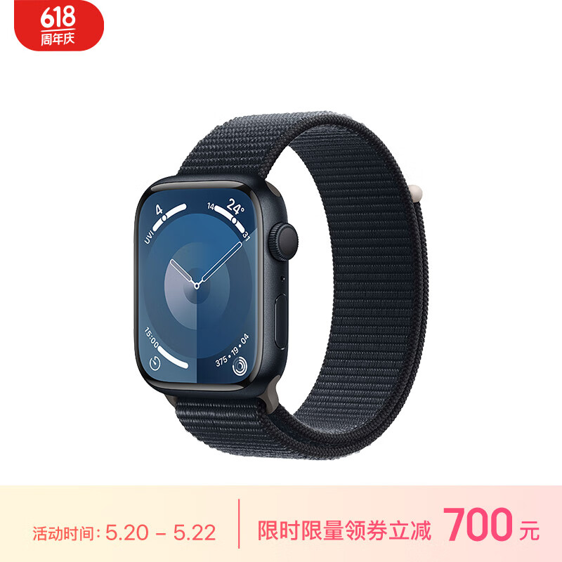 Apple/苹果 Watch Series 9 智能手表GPS款45毫米午夜色铝金属表壳 午夜色回环式运动表带 MR9C3CH/A价格:3199.00元!