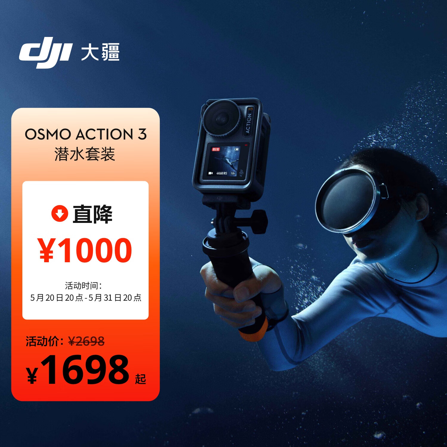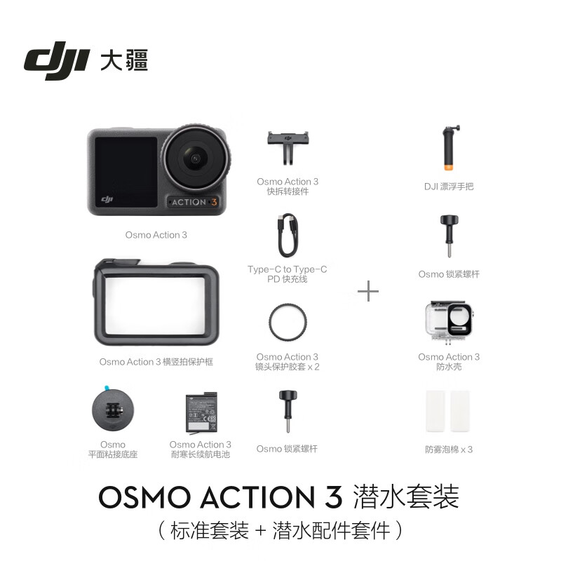大疆 DJI Osmo Action 3 潜水套装 灵眸运动相机 4K高清增稳小型手持防抖Vlog水下摄像机+随心换1年版价格:1807.00元!