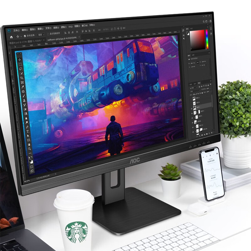 AOC31.5英寸4K type-c 65W反向充电 窄边框 旋转升降 低蓝光不闪屏 专业设计商务办公显示器U32P2C价格:2599.00元!