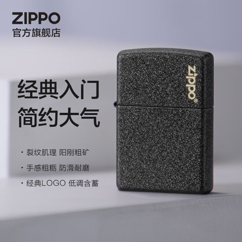 ZIPPO打火机之宝防风煤油 黑裂漆经典商标 520礼物男士 单机 可定制价格:198.00元!